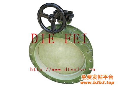 玻璃钢蝶阀把主要易腐蚀部件如阀体、阀板等设计为玻璃钢材料,玻璃钢部件所使用的纤维、纤维织物与树脂类型由蝶阀的工作条件确定。玻璃钢阀体的主体形状为直管状,它的结构特点是以一段玻璃钢直管为基础,然后再增加法兰、密封环制造而成。该种蝶阀具有耐腐蚀能力强、成本低廉、制造工艺简单灵活等特点。质轻而硬、不导电、机械强度高、耐腐蚀、安装方便、耐温高。可添加防静电材料,达到防静电作用。玻璃钢蝶阀可用于输送腐蚀性气体的管道中,具有不腐蚀,寿命长的特点,可做成各种颜色。